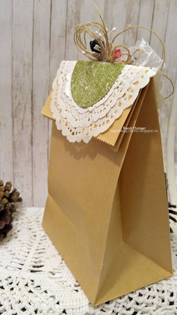 Her har jeg pyntet en papirpose som skal fylles med litt jule-snop.